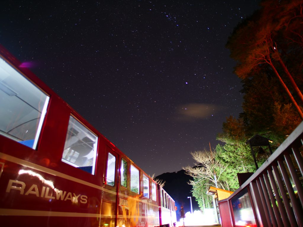 星空列車は千頭駅を17時20分に出発、18時25分に奥大井湖上駅に到着します。奥大井湖上駅のホームやホームの上にあるログハウスで60分間、星空を観察した後、奥大井湖上駅を19時21分に出発し千頭駅に20時21分に戻ってくるものです。乗車するには星空列車特別乗車券が必要で料金は大人1940円、小人(小学生)970円。荒天時は運転が中止されるほか、天候によっては星空が見えないことがあります。乗車券購入などの詳細は大井川鐡道HP(https://daitetsu.jp/)を参照ください。